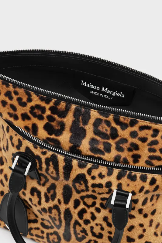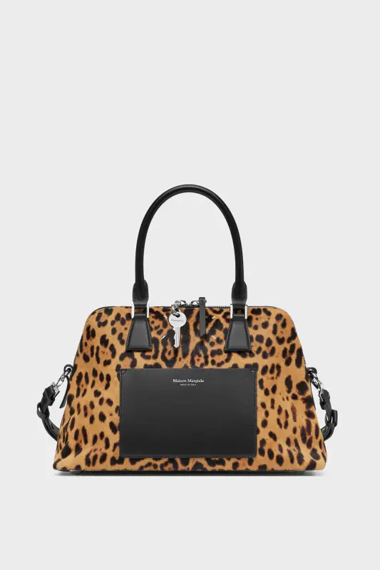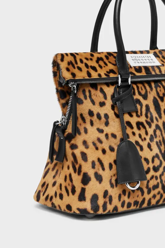 The 5AC medium fuses precision with provocation in bold leopard-print. Black leather trim frames the silhouette, grounding the tactile finish with structured contrast. The iconic 5AC line takes its name from the French word 'sac' (bag). It explores the Maison's Anonymity of the Lining concept. Accented with the Maison's numeric artwork and four stitches – the opposite of a label.
