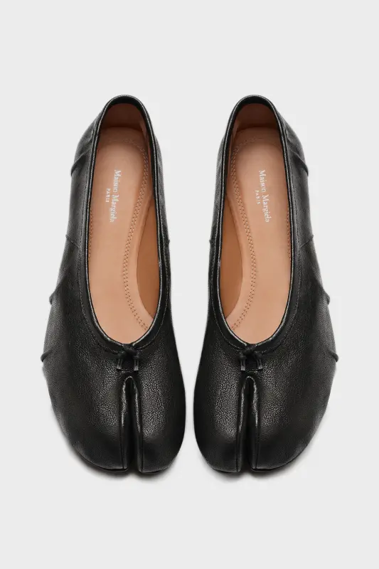 Maison Margiela Black Nappa Leather Tabi Ballerina Flats Black