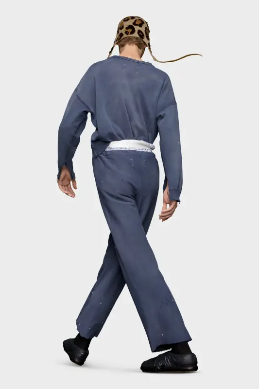 In organic cotton fleece, the round-neck sweatshirt features slashed long sleeves and a handwritten Margiela logo at the hem. Raw edges present an undone aesthetic. Maison Margiela’s signature, the Four stitches, appear at the back; the opposite of a label.
