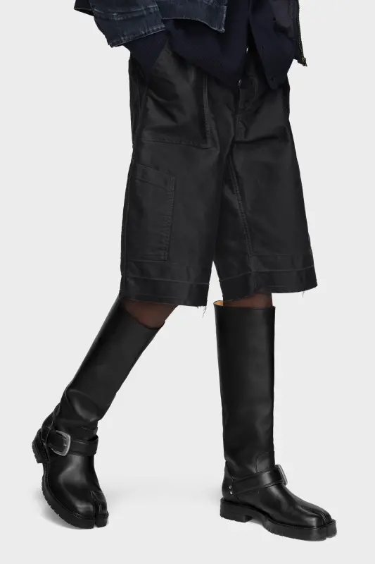 Maison Margiela Mens Black Leather Tabi County Knee Boots Black