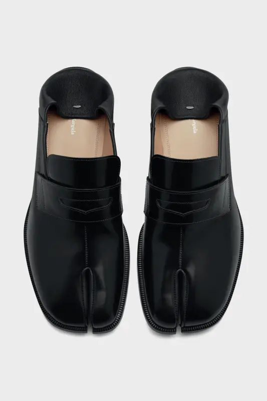 Maison Margiela Mens Black Leather Tabi Slip-On Black