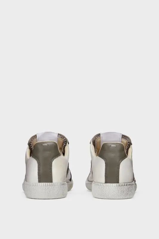 The Replica Iridescent sneakers are crafted in smooth calfskin and a glitter suede with a high-shine finish and iridescent coating that reflects coloured tones in the light. The Maison's iconic Replica sneakers are inspired by Austrian sports shoes from the seventies. Details on the Replica pairs are continually reworked in line with the season's inspirations.