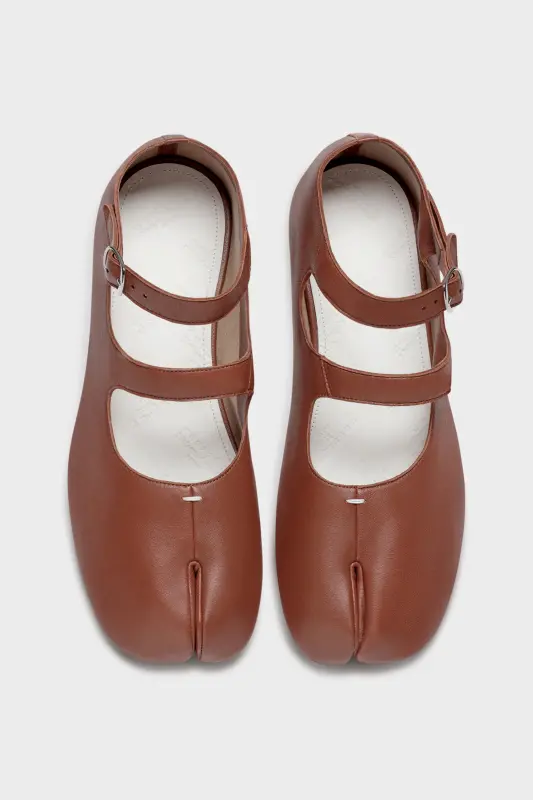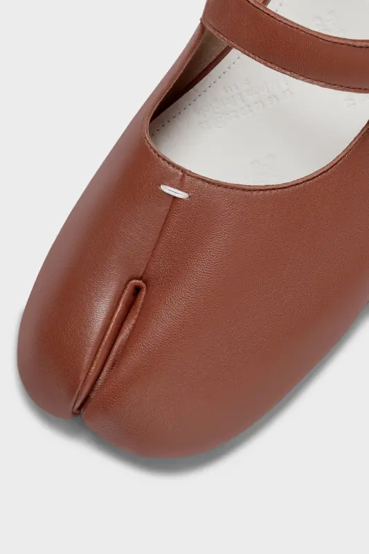 Iconic Maison Margiela's split-toe Tabi ballerina in soft leather. They are accented with a petite rope bow detail and have leather inner and sole.