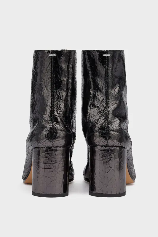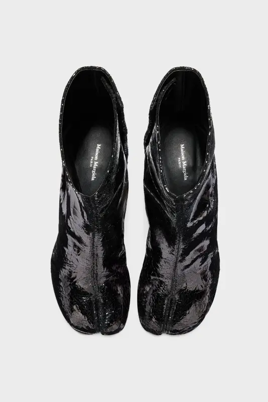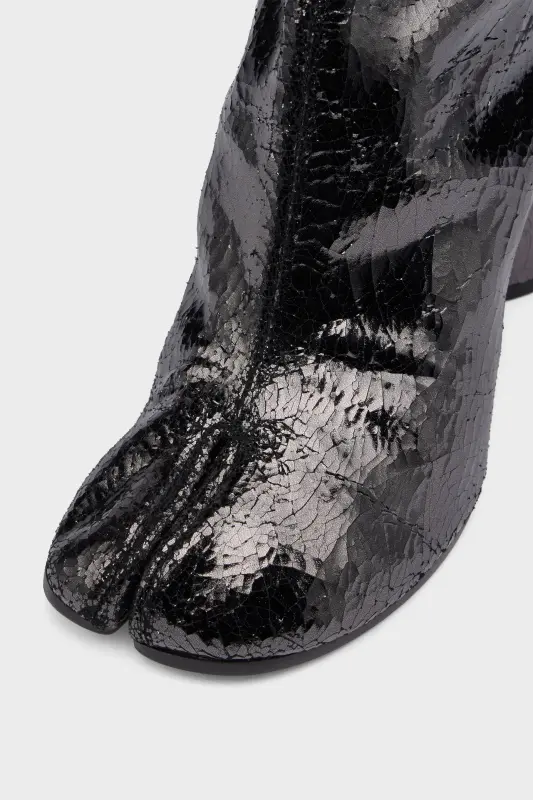 The Tabi boots in the broken mirror finish feature the Maison's iconic Tabi split-toe shape. They have a cylindrical high heel. Tabi styles are inspired by the traditional 15th century Japanese sock bearing the same name. It captures the avant-garde and insubordinate spirit of the Maison and exists as a heritage classic, continually explored through each collection.
