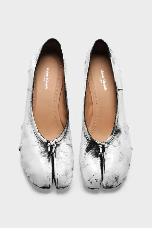 Maison Margiela White Hand-painted Heeled Tabi Ballerina Black and White