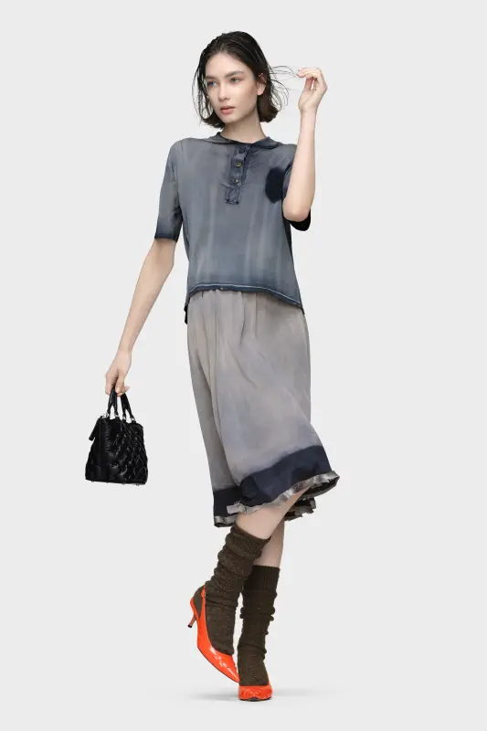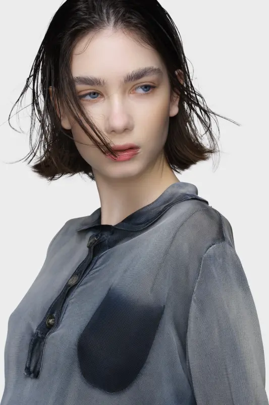 In a limited run, this sun-faded polo top recalls garments naturally worn by time. Drawing from real workwear pieces, it’s finished with a vintage wash that mimics the patina of sun exposure, lending texture to its ultralight construction. Maison Margiela’s signature, the four stitches, appear at the back; the opposite of a label.