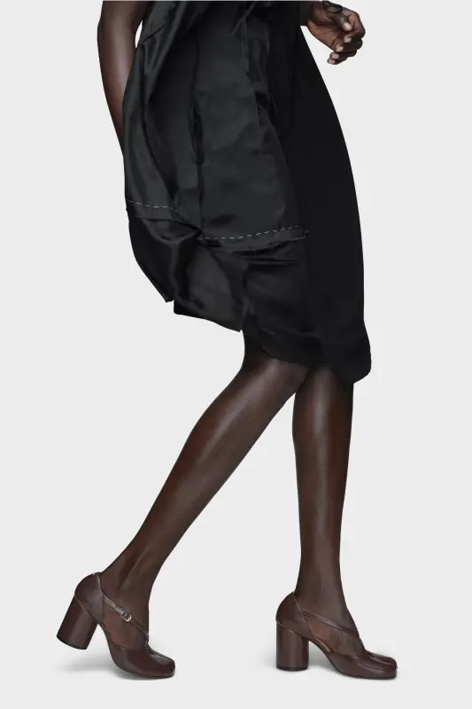 These décolleté heels are crafted in smooth leather with a curved strap across the foot, introducing a subtle asymmetry to the clean, structured form. They feature the Tabi split-toe, inspired by the traditional 15th century Japanese sock bearing the same name – launched for the Maison's debut collection in 1989. It captures the avant-garde and insubordinate spirit of the Maison and exists as a heritage classic, continually explored through each collection. Maison Margiela's signature single white stitch appears at the back.