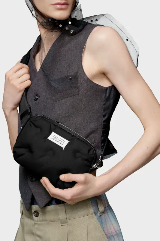 Constructed in nylon and calf leather, the Glam Slam sport body bag recalls the notion of unconscious glamour and evokes its association to ease, following the study into dressing and travelling rituals worldwide. The Glam Slam debuted in the SS18 show and has a quilted design which mimics matelassé – the style of hand-stitched quilts created in Marseilles, France. The design features supple rounded edges, a zip closure and the Maison’s numerical logo tab. It is carried by the contrast adjustable strap.